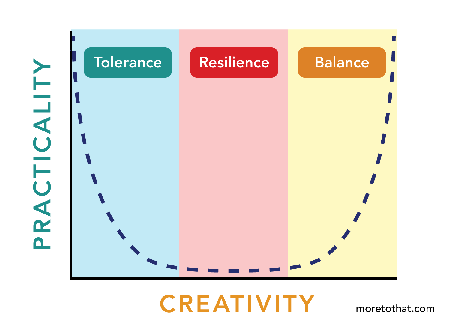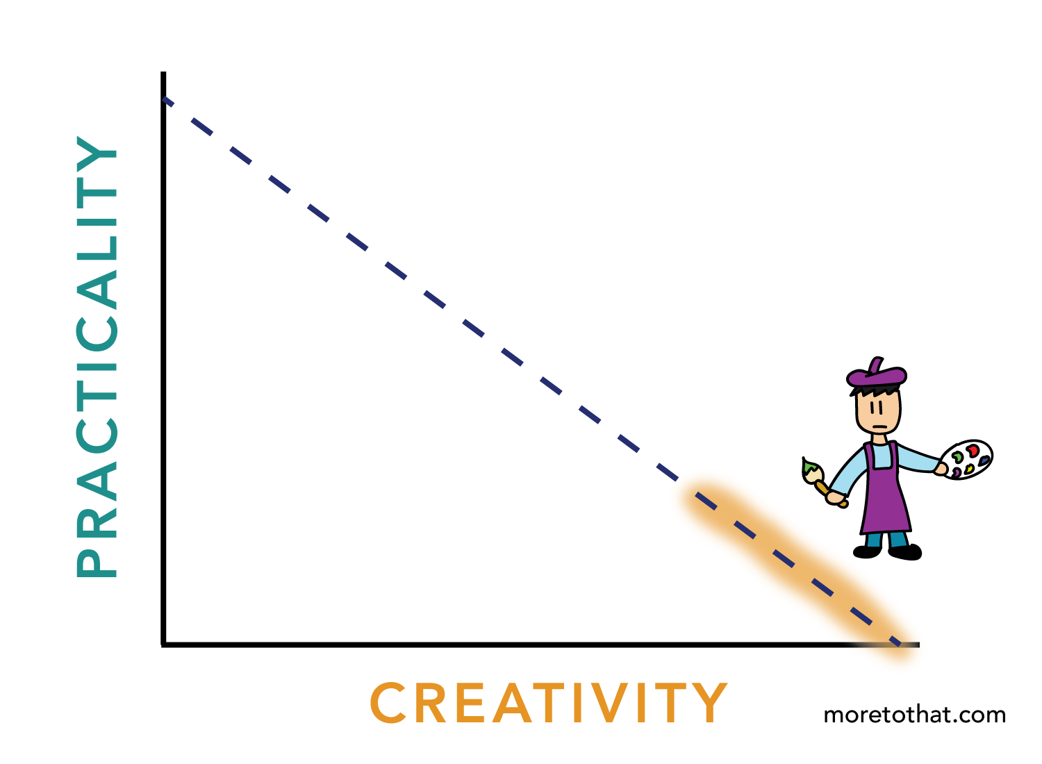 If I were to illustrate this perceived tradeoff between creative expression and practical application, it would look like this: