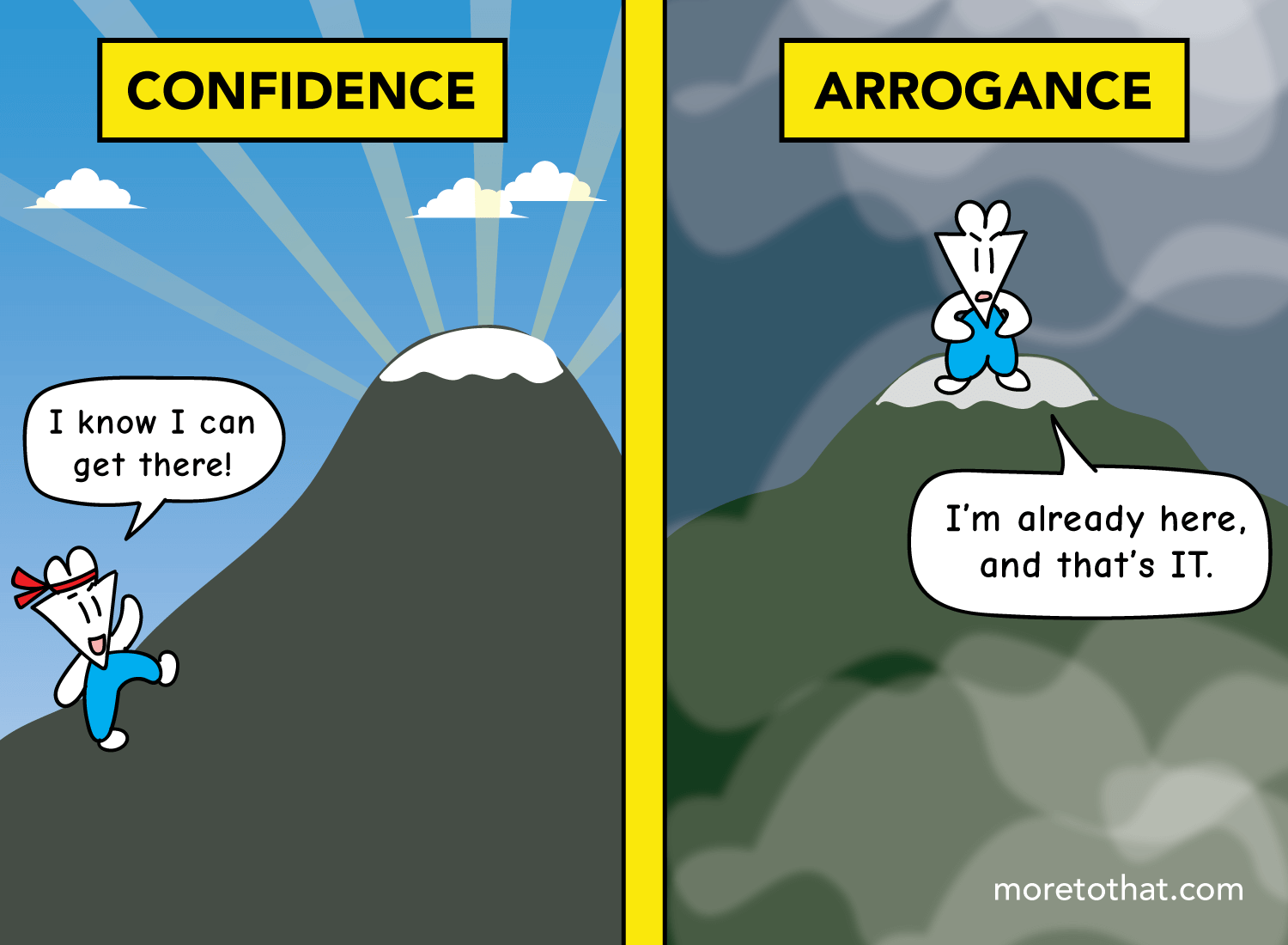 Confidence is a close cousin of arrogance. Confidence is when you believe that your potential can be actualized, whereas arrogance is when you believe that your potential has already been actualized. That difference is subtle, but the implications are far-reaching.